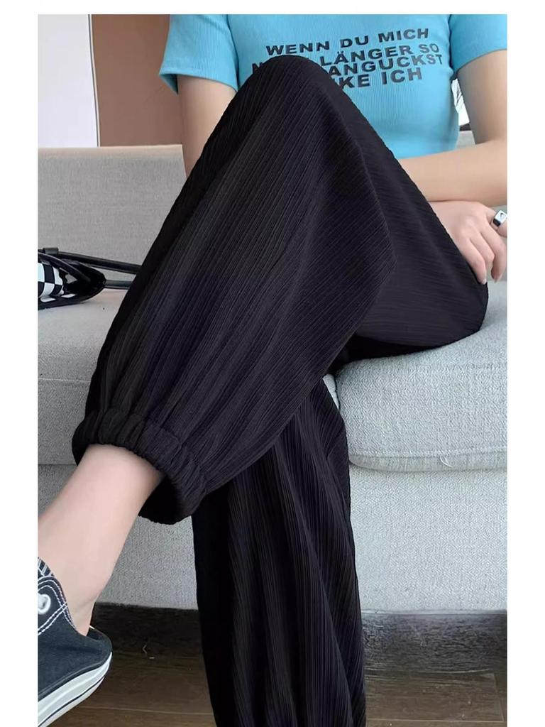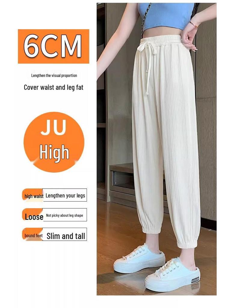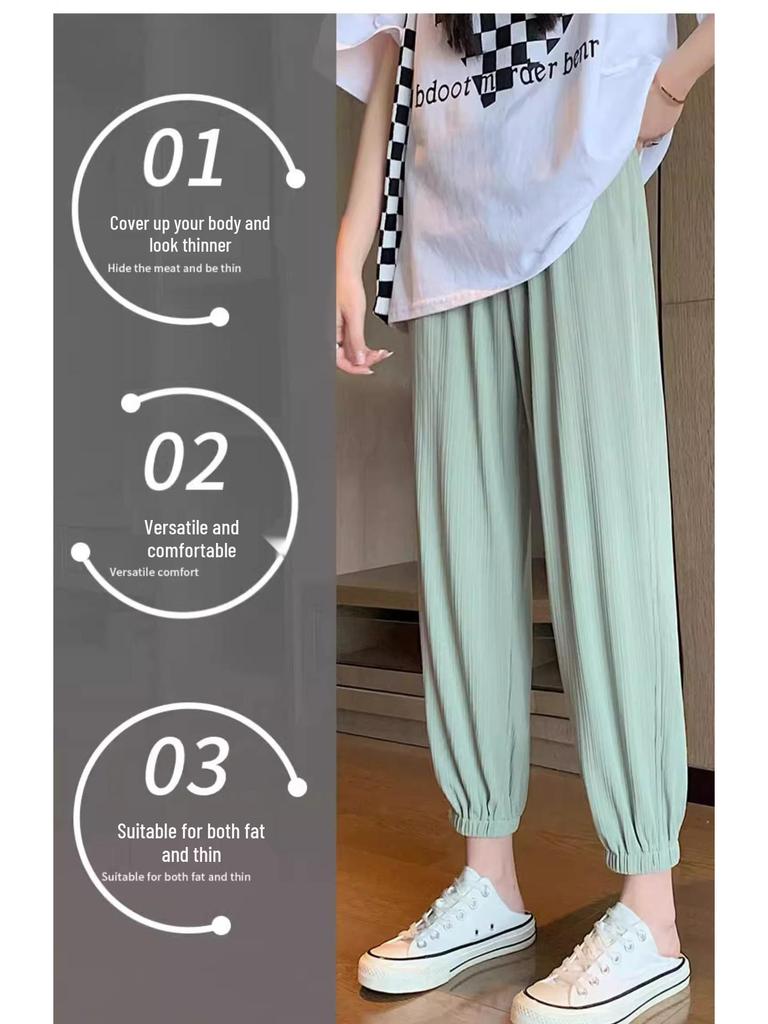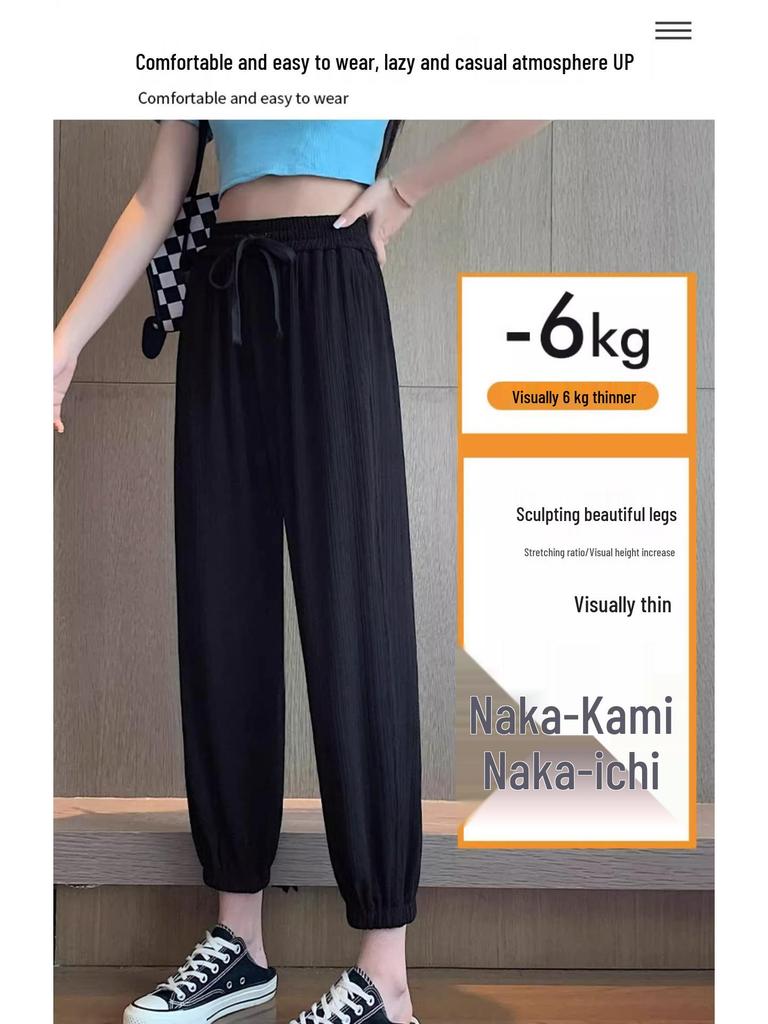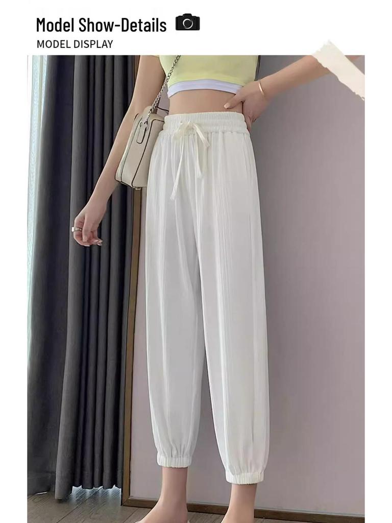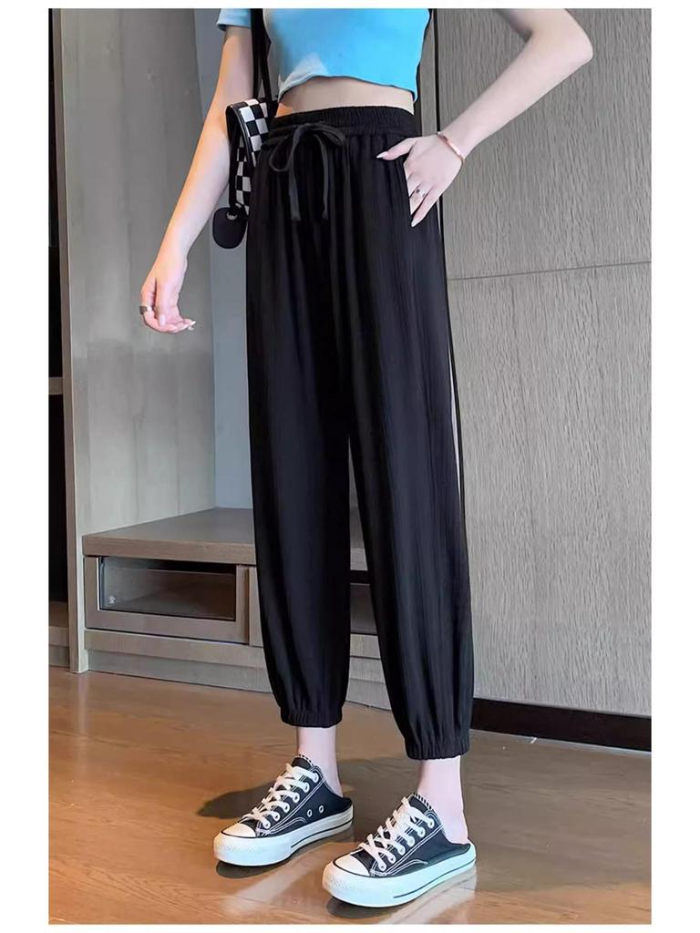 Petite Ice Silk Drawstring Sweatpants, Women's Summer Thin Lantern Style, Mosquito-Proof, Cuffed for Cool Comfort.