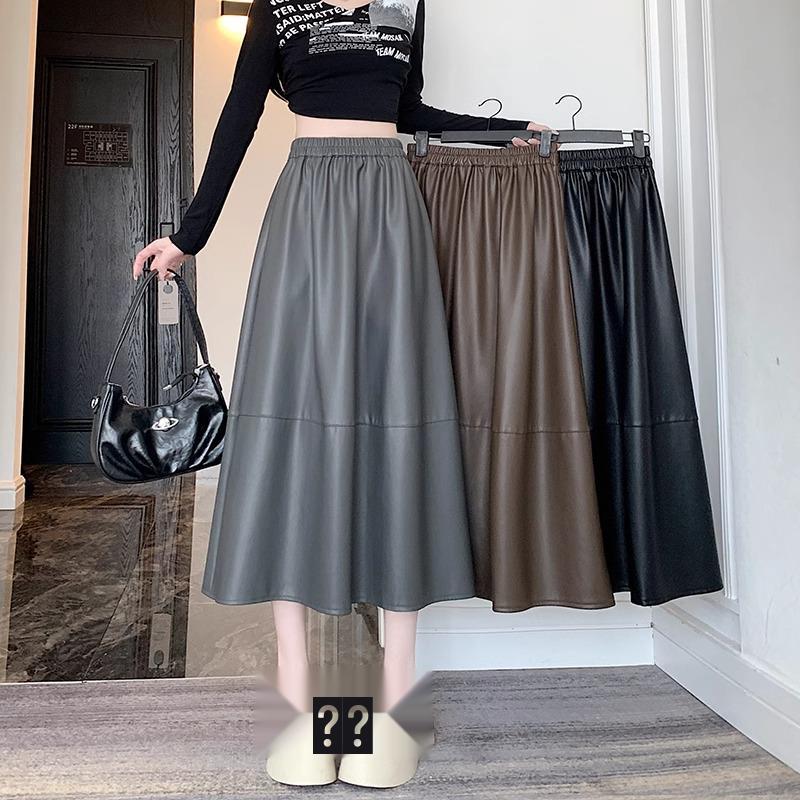 2024 Осень/Зима Новая Юбка Миди из ПУ Кожи - Универсальная, Модная, Юбка-Зонт с Эластичной Талией для Женщин