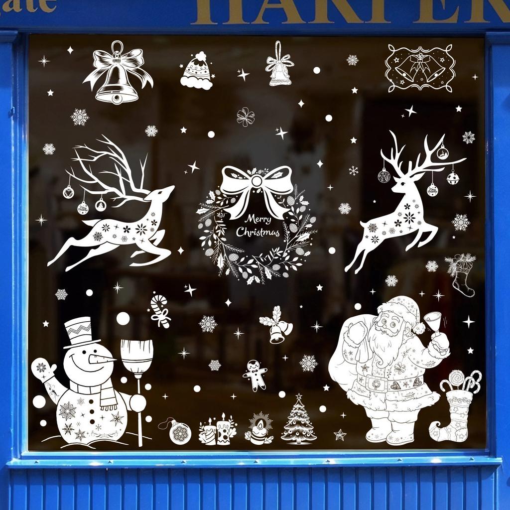 Белые электростатические наклейки на стекло Санта Клаус, украшение окна, снежинки, лось, макет рождественской елки, наклейки на окна