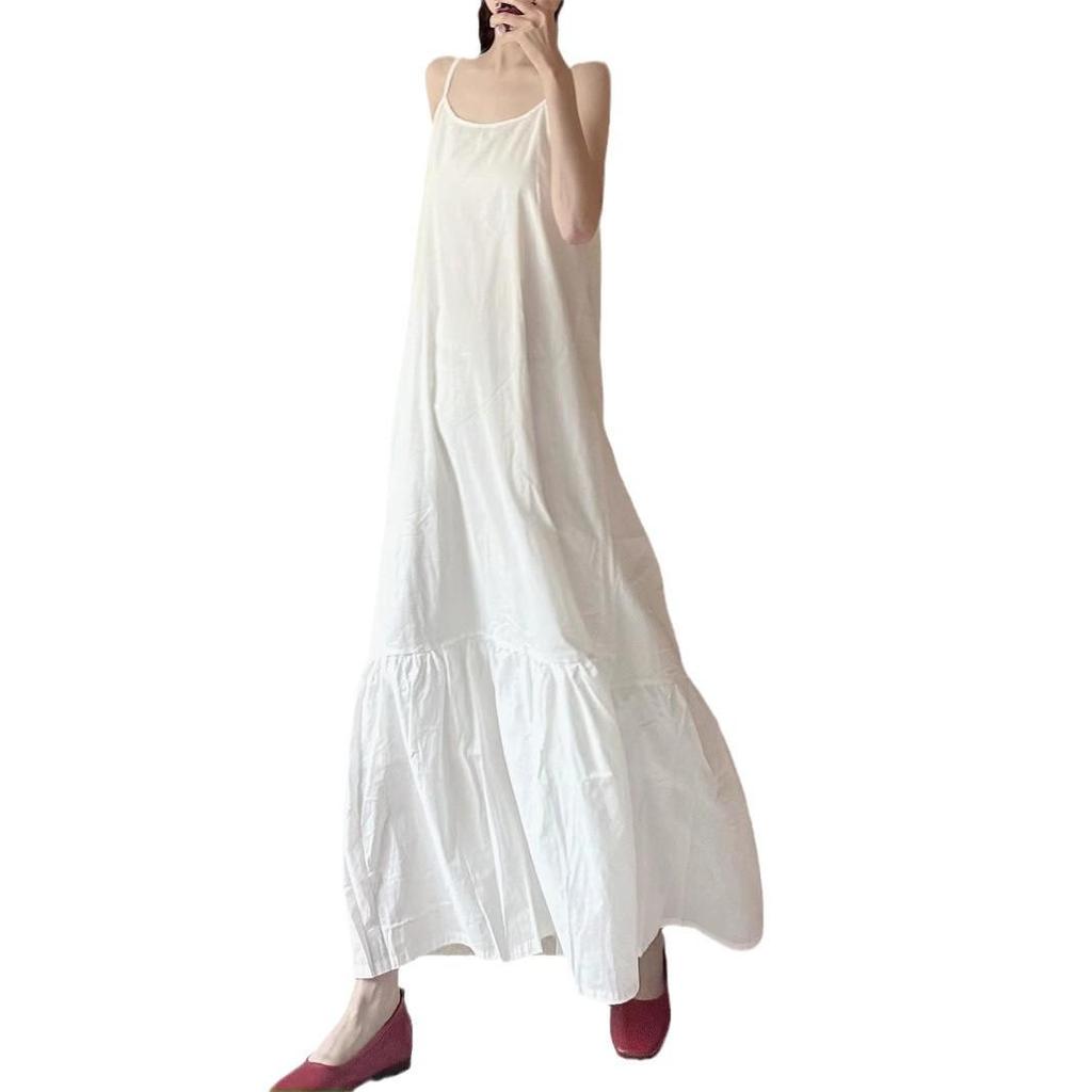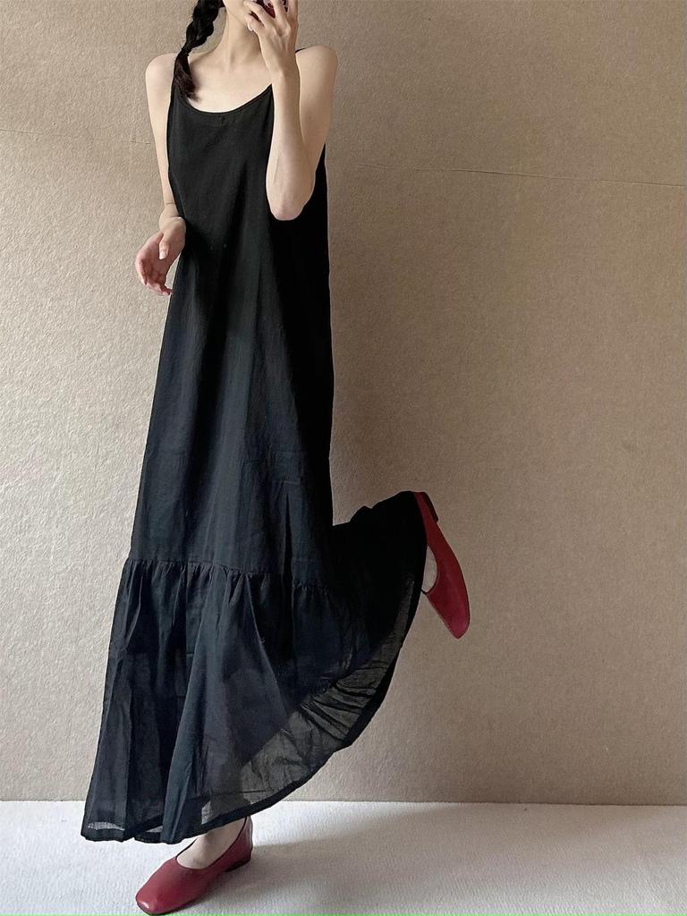 Летнее ретро-макси-платье А-силуэта 2025: Без рукавов на тонких бретелях, Свободный пуловер, Дизайн средней длины