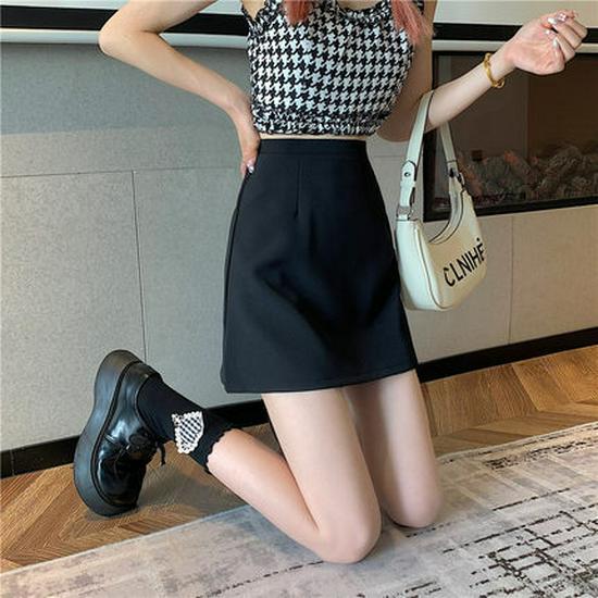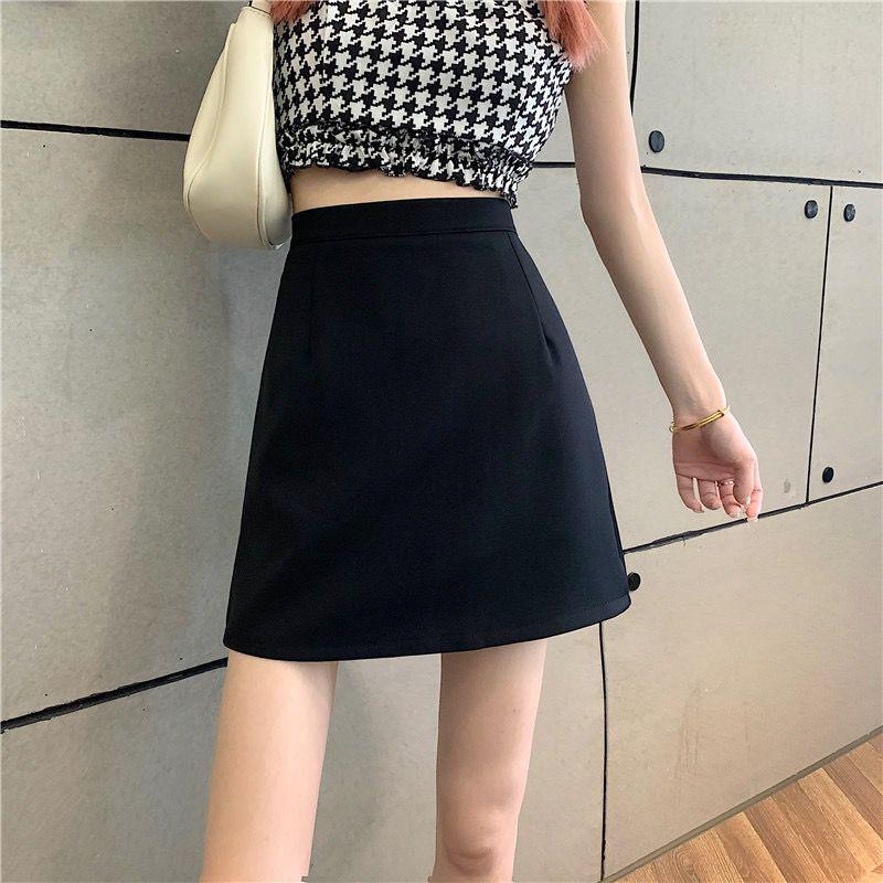 Женская летняя юбка А-силуэта с завышенной талией, прилегающая, в стиле колледжа, черного цвета, 2024