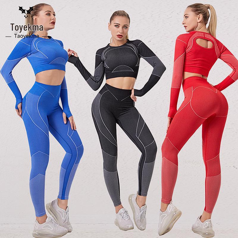 Женский бесшовный фитнес-комплект из двух частей в горошек: Топ с длинным рукавом и брюки с высокой талией для бега и йоги — купить товар онлайн с бесплатной доставкой по всему миру!