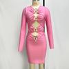 2023 Европейский и американский стиль Полый дизайн Кроп-топ Платье-бандаж - Вечернее платье бодикон с длинным рукавом для женщин