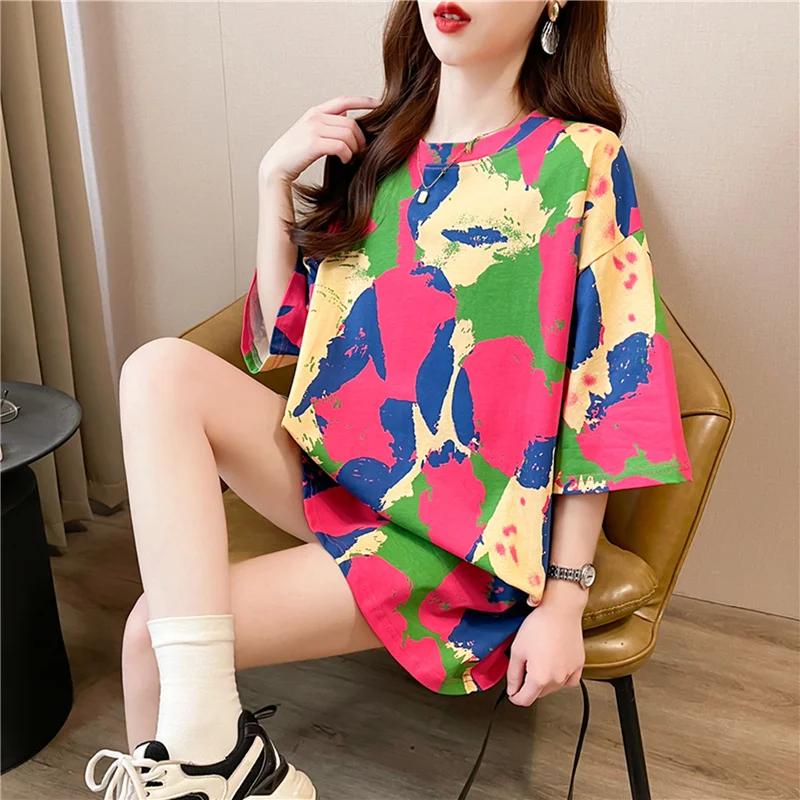 Летняя винтажная футболка с принтом Мода Женская Оверсайз Графические Длинные Футболки Y2k Топы Харадзюку хип-хоп Уличная одежда молодежная