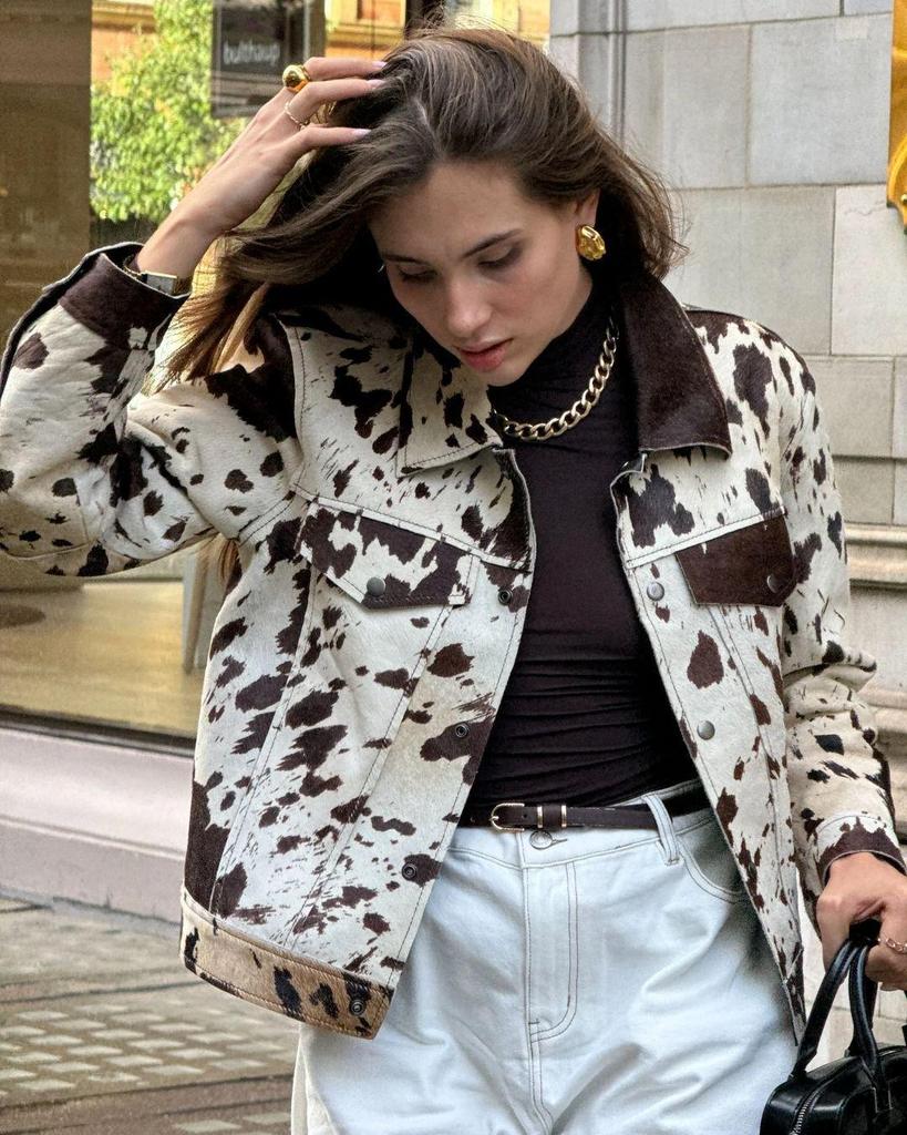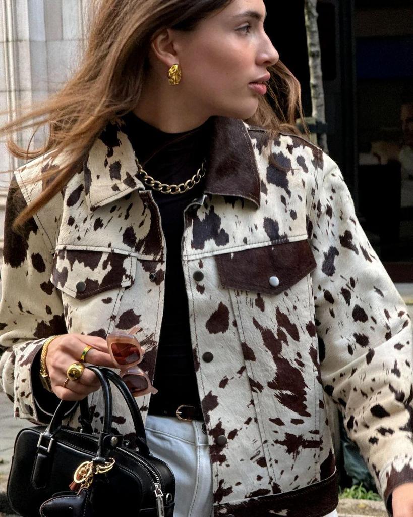 Женское короткое пальто в европейском и американском стиле с лацканами и нерегулярным узором