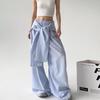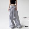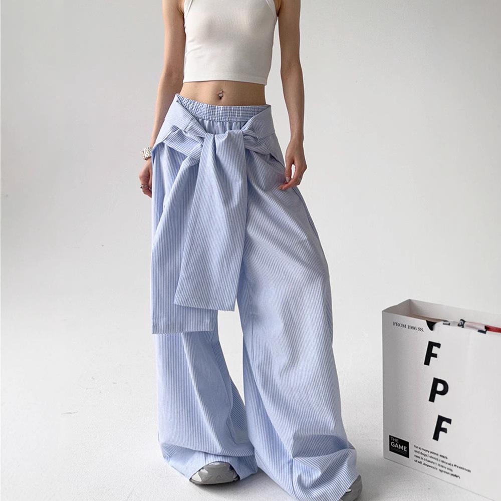 Модные синие полосатые брюки с высокой посадкой и широкими штанинами, со шнуровкой на талии, идеально подходят для весны и осени, доступны сейчас