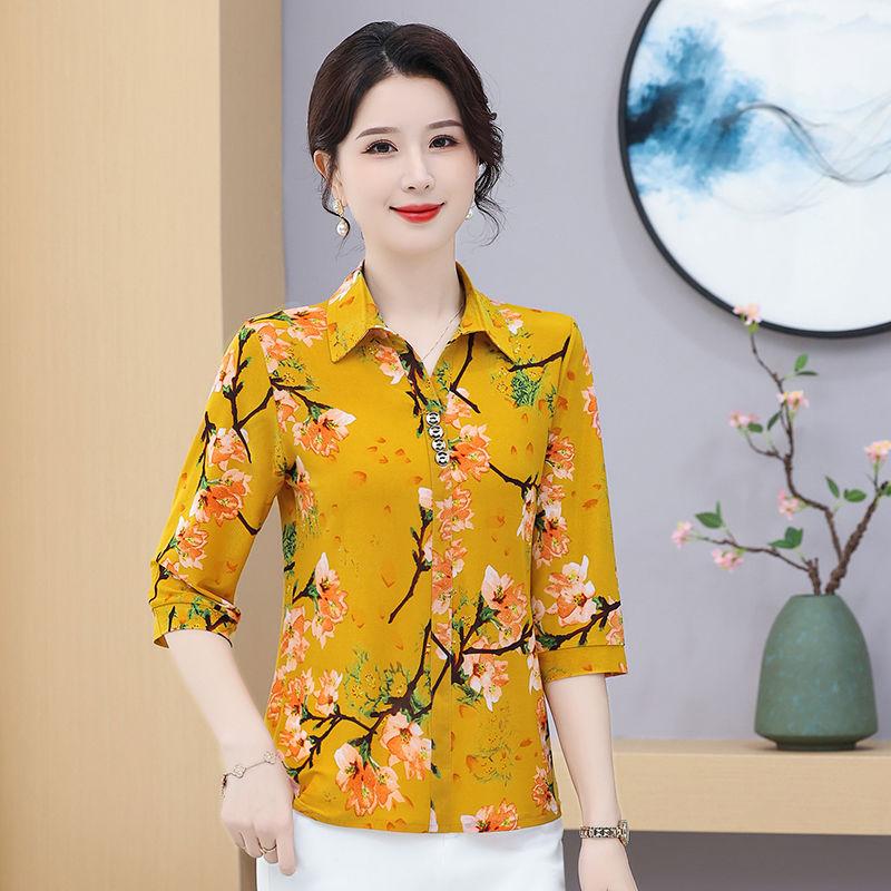 Женские Модные Новые Топы Семиточечная Блузка с Принтом для Среднего Возраста Цветочная — купить товар онлайн с бесплатной доставкой по всему миру!