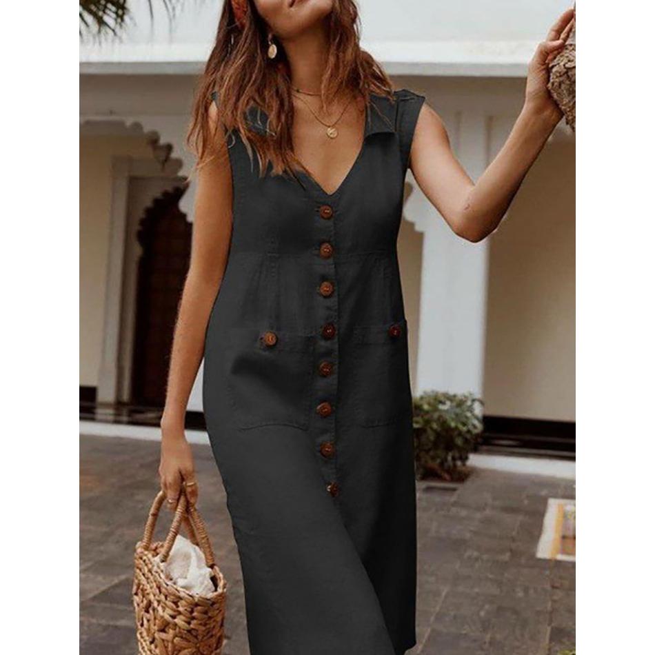 Грудная пуговица добавляет дополнительный штрих элегантности и выделяет вас из толпы. Это универсальное платье можно сочетать с изысканными ожерельями, браслетами, серьгами, ткаными сумками или обычными сумками, сандалиями или туфлями на высоком каблуке для завершения образа.