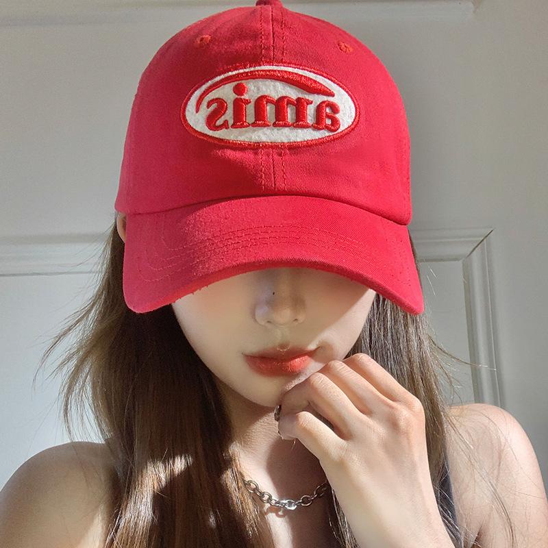 Red Baseball Cap for Women In Spring and Summer Casual and Versatile Big Head Circumference Showing Face Small Soft Top Baseball Cap Sun Hat
