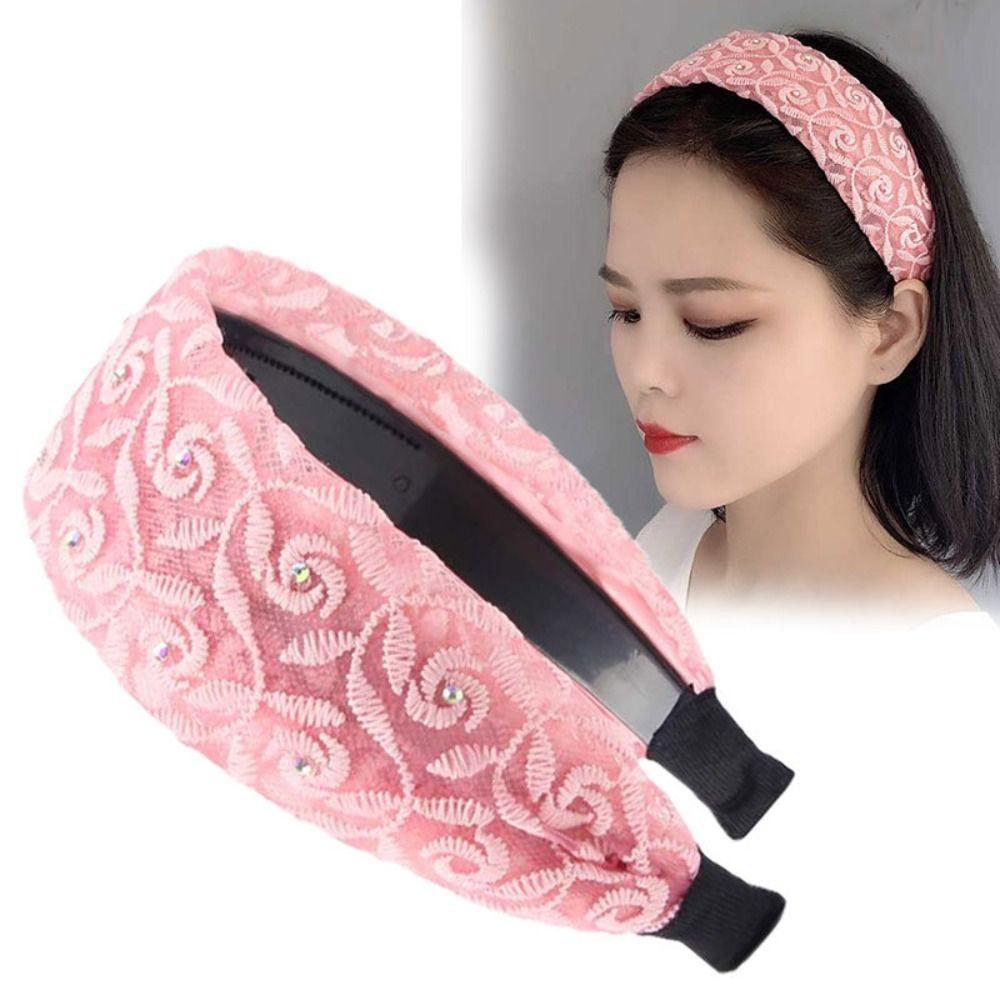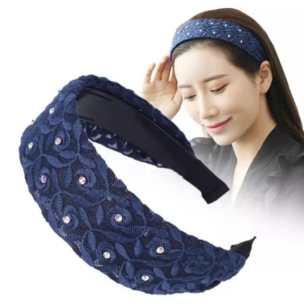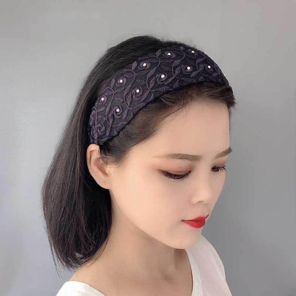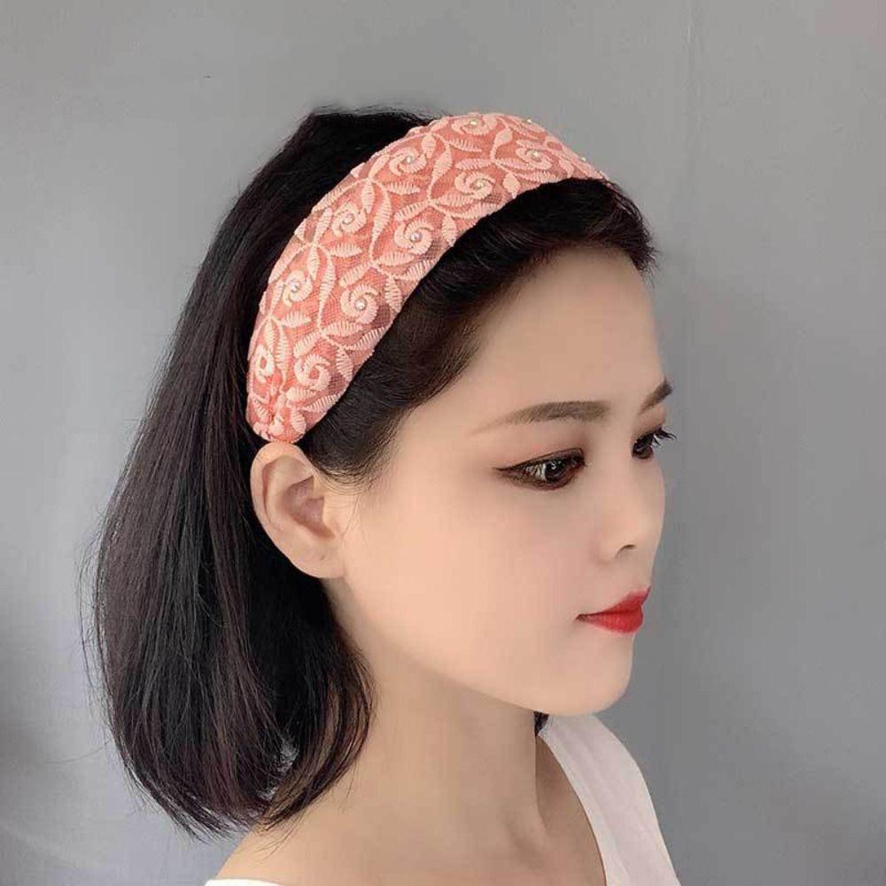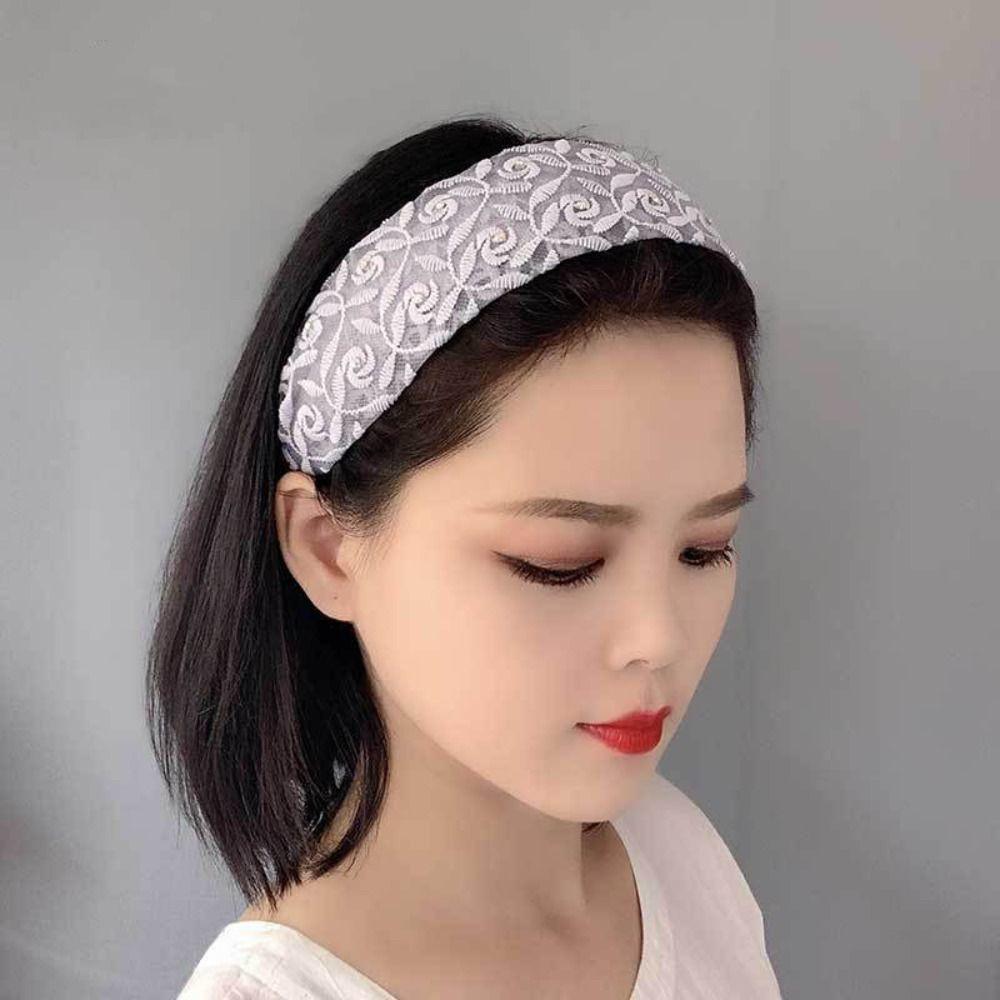 Широкая повязка на голову с кружевом по бокам, вышивка, обруч для волос для мамы, трендовый корейский головной убор, модный головной убор