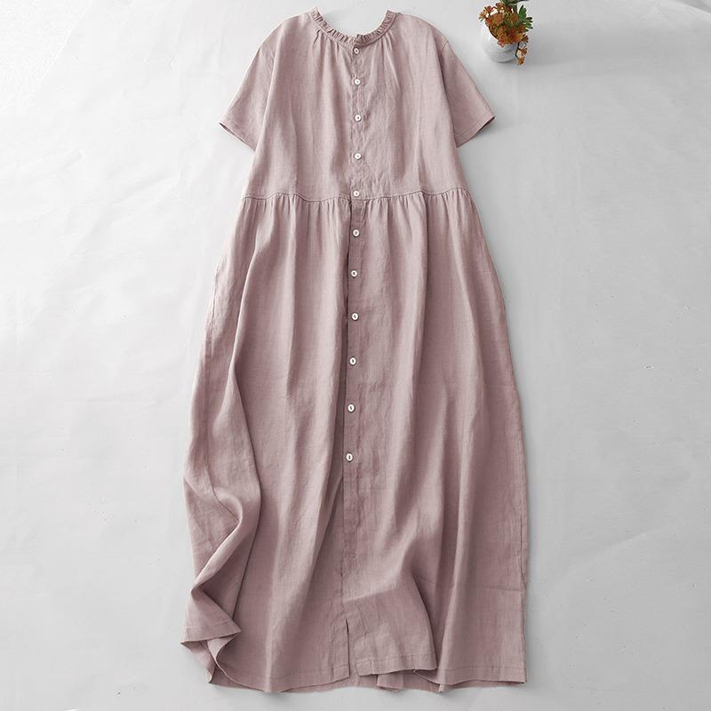 Женское летнее свободное платье миди с короткими рукавами из хлопка, льна, цвета розового корня лотоса
