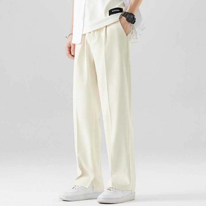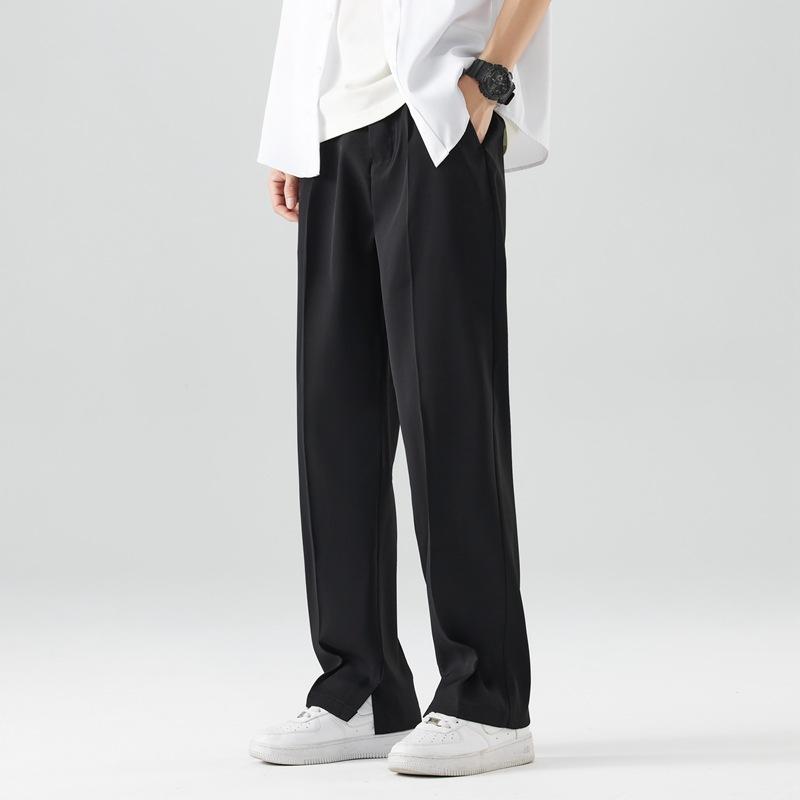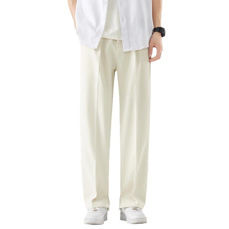 Летние повседневные брюки мужские дышащие полиэстеровые корейские модные брюки с полуширокой талией прямые свободные драпированные брюки