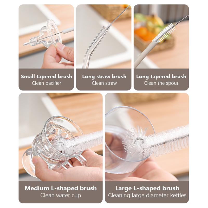 Набор из 5 предметов: щетка для мытья соломой, щетка для мытья чашек, щетка для мытья чашек, маленькая щетка, щетка для чистки щелей, щетка для чистки носиков чайников, щетка для бутылок