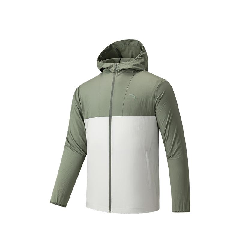Anta Спортивная Повседневная Минималистичная Цветной Блок Толстовка с Капюшоном Защита от УФ-лучей Солнцезащитная Футболка Мужские топы Зеленый 152527605-2