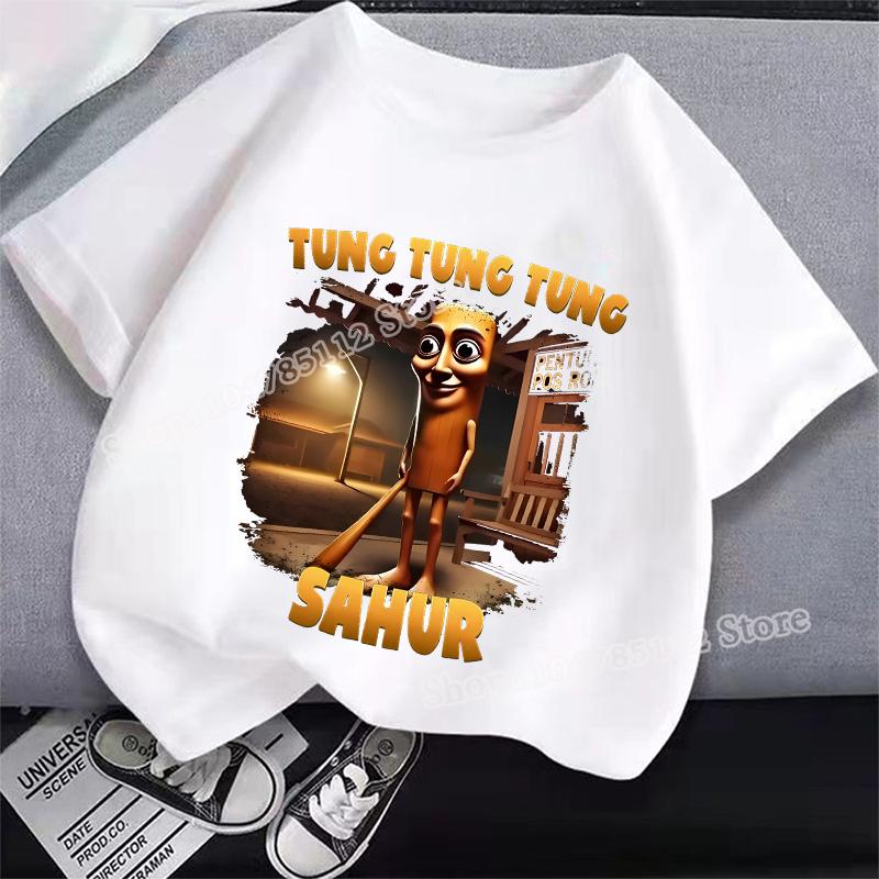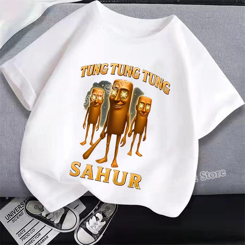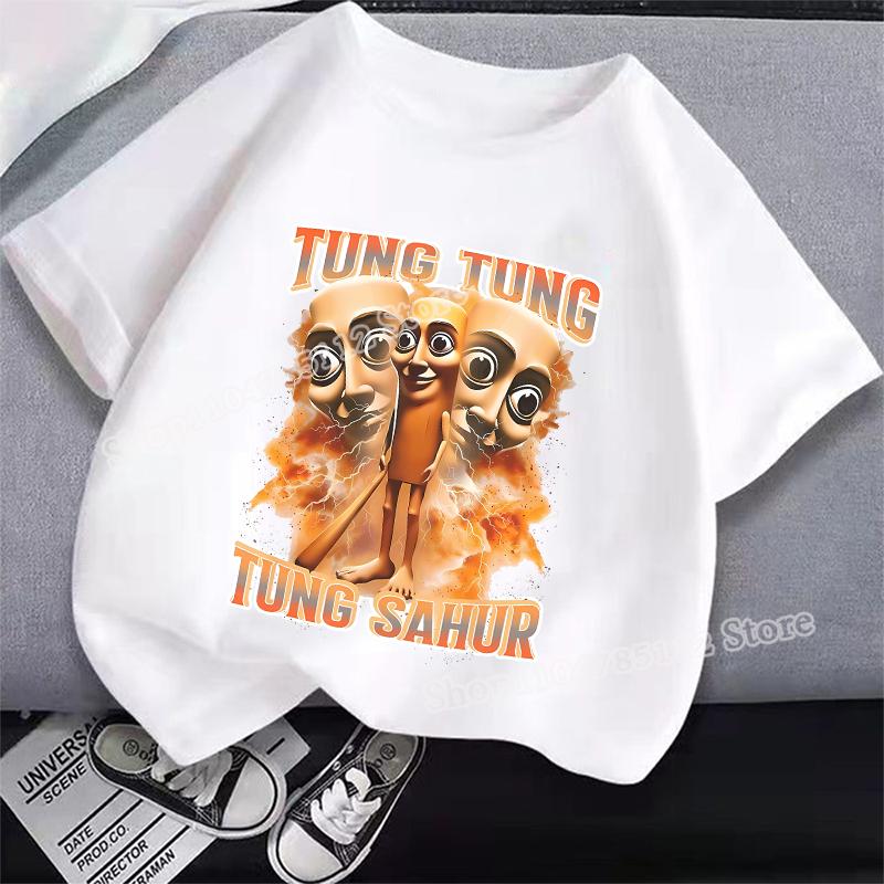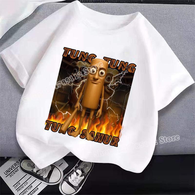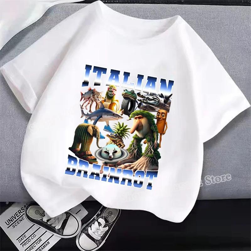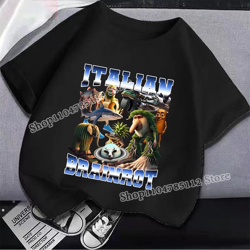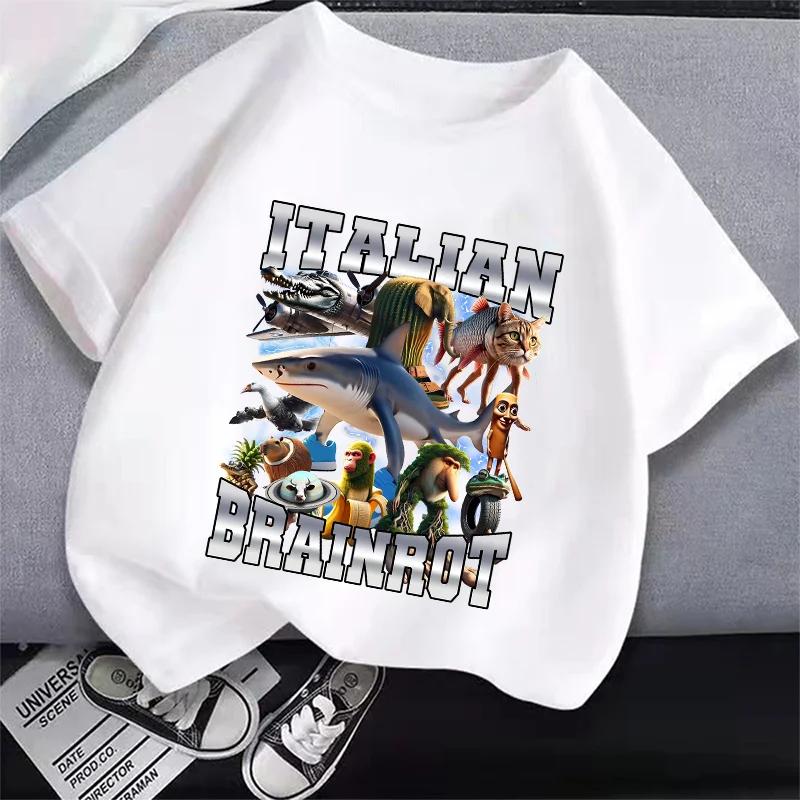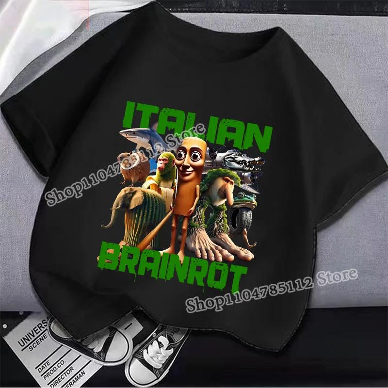 Итальянская футболка Brainrot Tung Tungtung Sahur Мультяшный Аниме Принт Одежда Круглый Вырез Базовые Мальчиковые Топы Впитывающие Повседневные Рубашки Подарок