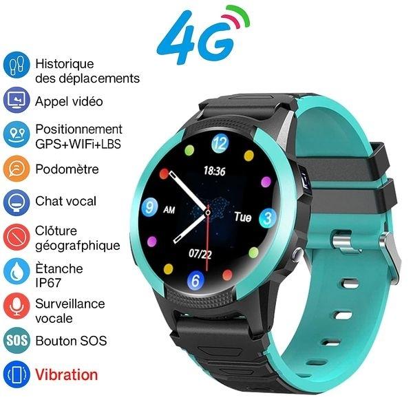 Водонепроницаемый IP67, большой экран, часы, точный GPS-трекер через Wi-Fi или SIM-карту (не предоставлен), запись местоположения, маршруты на 1 месяц, оповещения, 2 дня автономности, превышение сигнала геозоны, связь с человеком по аудио и видео, бесплатное приложение, доступ к приложению нескольких человек, кнопка SOS, двусторонняя голосовая связь, сердце тариф, белый список, функция «Не беспокоить», французский язык, для повышенной безопасности пожилых людей и людей с ограниченными возможностями, память 640 МБ на 3 HD-фотографии.