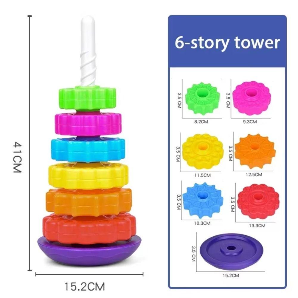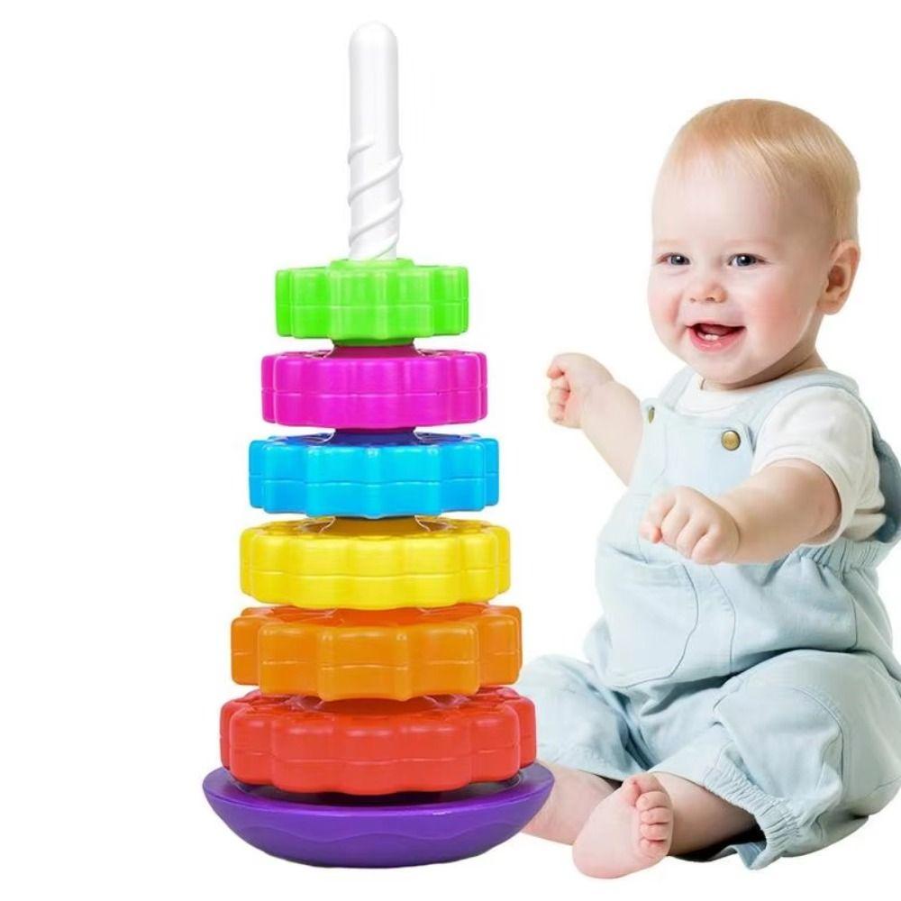 Раннее образование Вращающаяся радужная башня Детские вращающиеся штабелируемые игрушки развивают познавательные способности