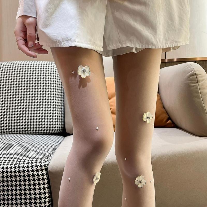 Молочно-белые колготки для женщин с цветочным узором, чулки против затяжек со стразами — купить товар онлайн с бесплатной доставкой по всему миру!