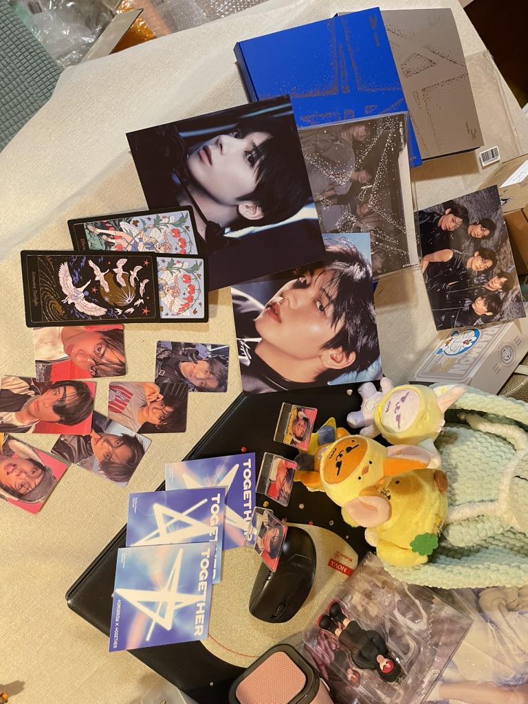 Альбомы бомба-пушка, пришли очень хорошо запакованными, целенькими. Очень удивила упаковка версии Etched, что это не фотобук, а просто фото отдельными карточками, но это не то, чтоб минус, просто нестандартно лично для меня. Особая радость для меня - попалась карточка с "Русалочкой", очень сильно ее хотела! Почти не попалось ничего с Бомгю, моим биасом, но зато очень много карточек/фоточек с Каем и Тэхеном 🥵