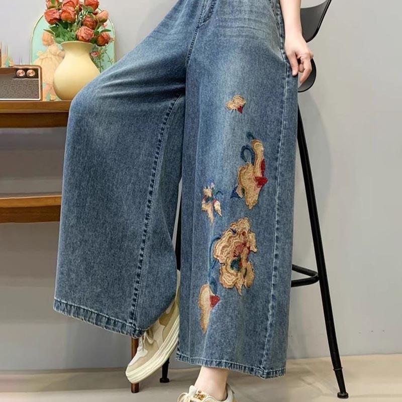 Летние хлопковые брюки женские больших размеров, свободные джинсовые брюки, универсальные повседневные джинсы с высокой посадкой и широкими штанинами — купить товар онлайн с бесплатной доставкой до всему миру!