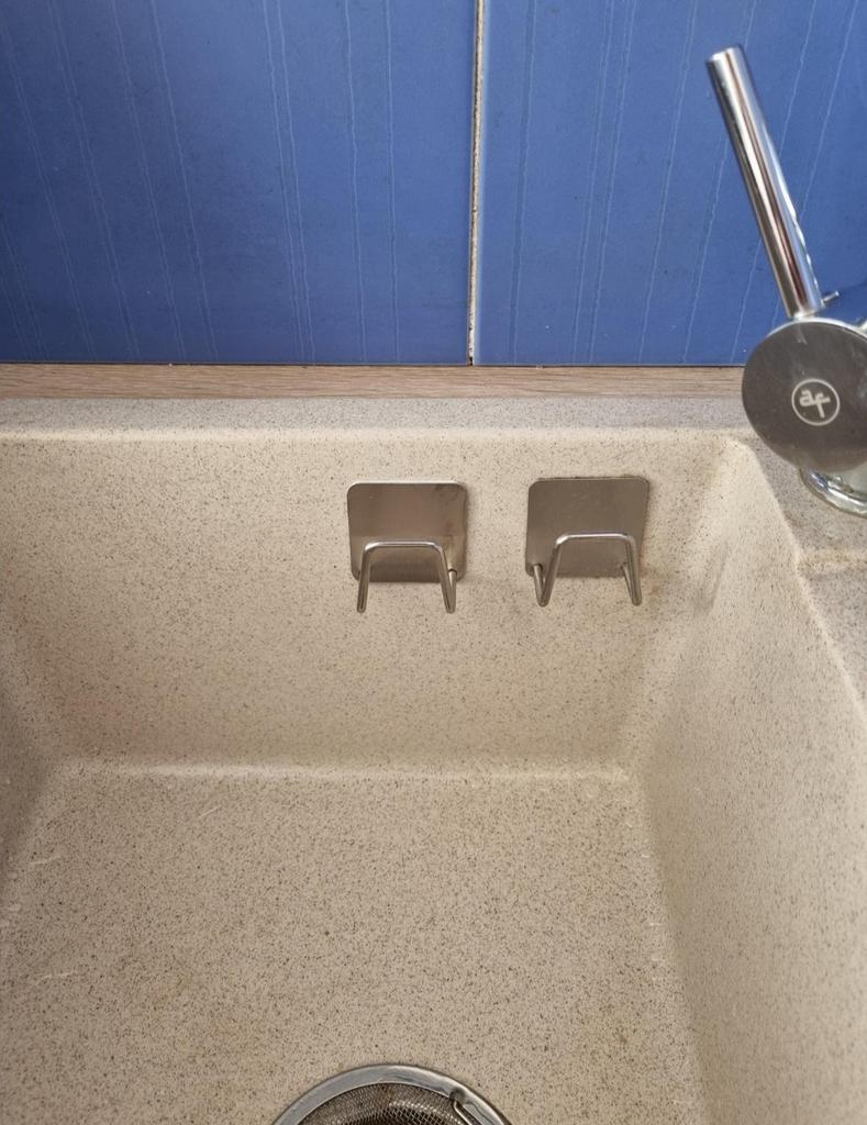 Держатель для губки Держатель выполнен из прочного металла. Минималистичный дизайн: металлический кронштейн с квадратной пластиной, прилагается в комплекте клей. Отмечу, что подойдет этот аксессуар для любой гладкой поверхности: на стенку возле мойки или в ванну, на дверцу шкафа или полку и тд. В моей мойке Держатель для губки прижился, в мойку вписался идеально.Так как крепится он с внутренней стороны мойки (в моем случае) его не видно, в глаза не бросается пока не подойдешь близко. В мойке много пространства не занимает, конструкция подходит идеально для всех стандартных губок, мочалок - это плюс. Держится прочно. Губка проветривается и быстро просыхает. Советую