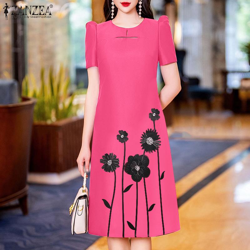 ZANZEA Женское повседневное летнее платье с круглым вырезом, коротким рукавом и принтом — купить товар онлайн с бесплатной доставкой по всему миру!