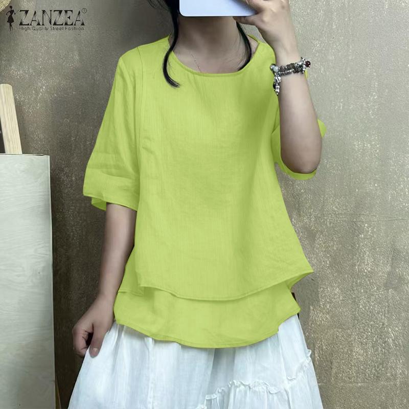 ZANZEA Женская летняя блузка с круглым вырезом, свободного кроя, с рукавом до локтя