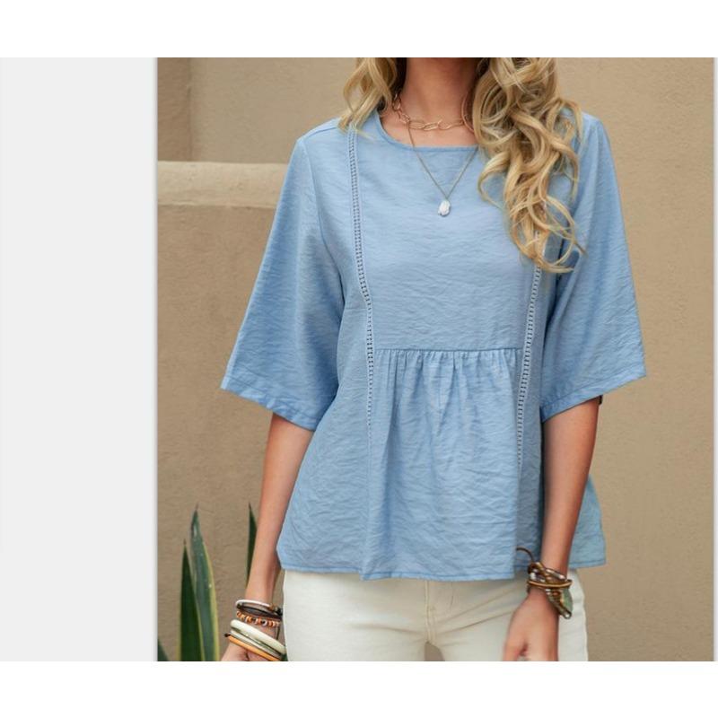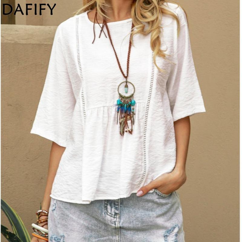 DAFIFY Женские модные повседневные летние весенние однотонные блузки и рубашки с круглым вырезом и рукавами 1/2 с принтом