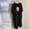 Корейское летнее повседневное платье-футболка миди с коротким рукавом большого размера