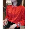 Женский жаккардовый топ в национальном стиле 2024: Весенне-осенняя рубашка премиум-класса со стойкой