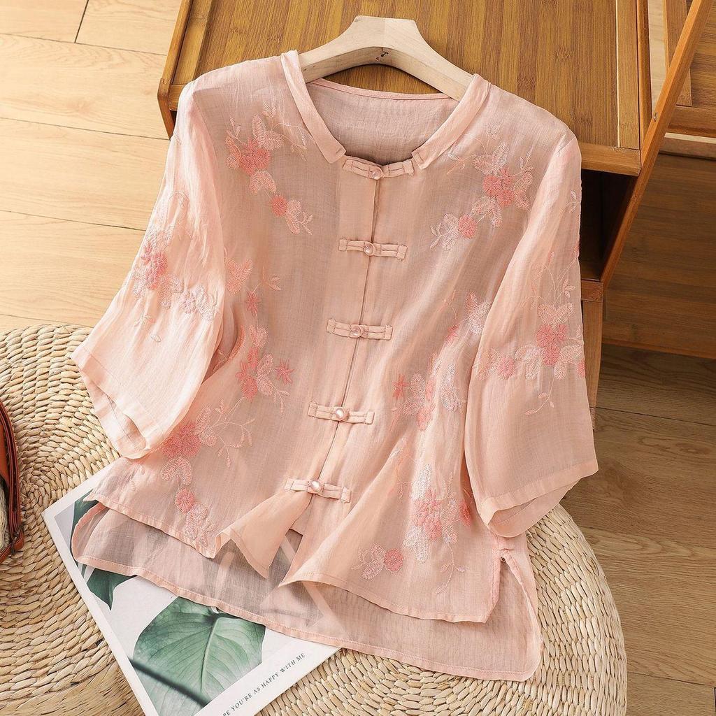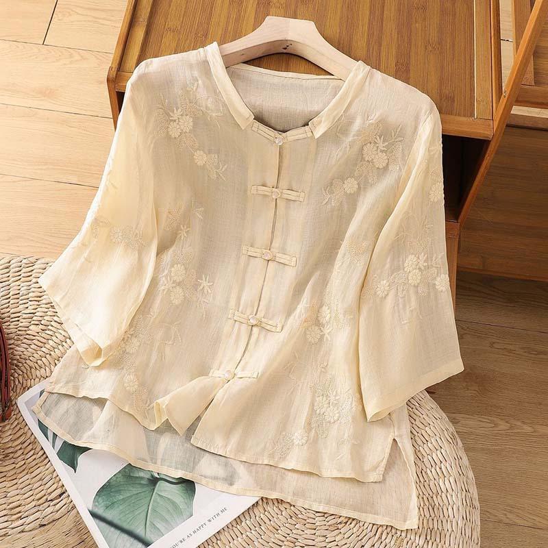 Этот кардиган — идеальное сочетание ретро-шарма и современного стиля, изготовленный из хлопково-льняной смеси для воздухопроницаемости и комфорта.. Свободный крой и рукава до локтя создают расслабленный, но элегантный силуэт, а круглый вырез горловины добавляет классический штрих.. Кардиган украшен изысканной вышивкой, добавляющей вашему гардеробу уникальный колорит.. Созданный с использованием отличительных пуговиц-лягушек, он передает суть моды в китайском стиле, что делает его идеальным выбором для весенних и летних мероприятий.
