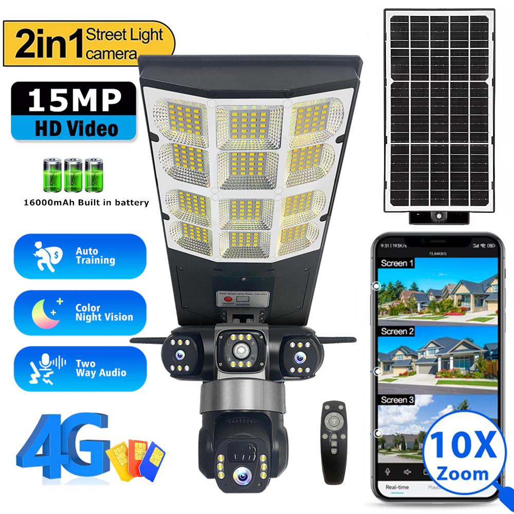 4G Солнечный Монитор Многофункциональный Низкое Энергопотребление Пульт Дистанционного Управления Уличный Фонарь WIFI Интеллектуальная Трехэкранная Камера