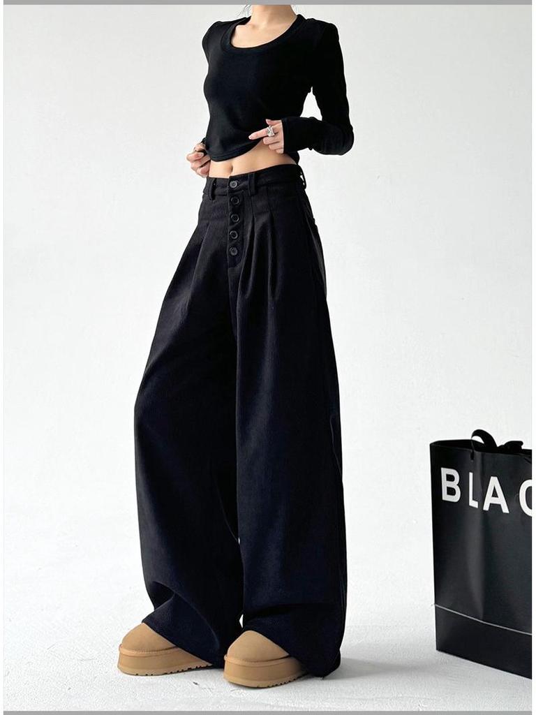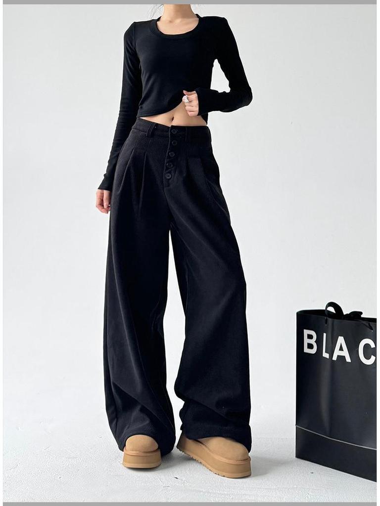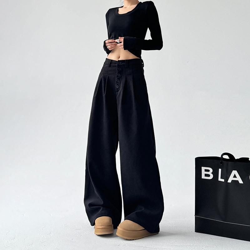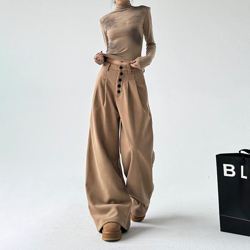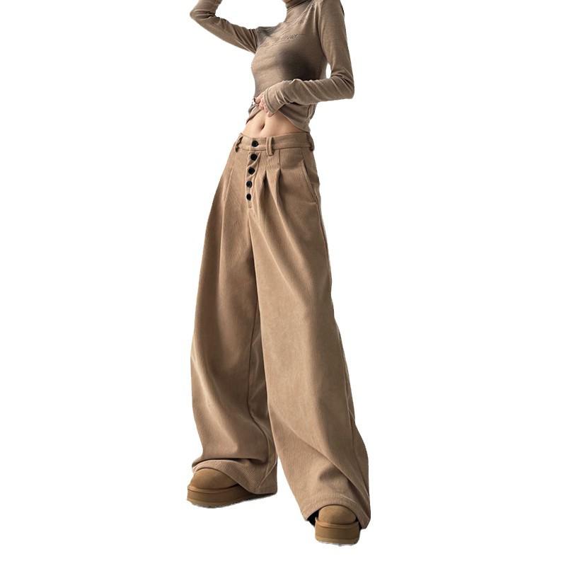 Женские брюки палаццо в американском ретро-стиле 2025: Повседневный, Свободный крой, Высококачественная драпировка для осени/зимы