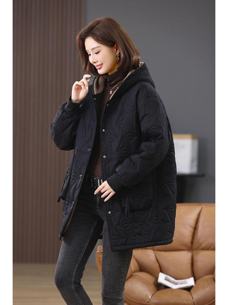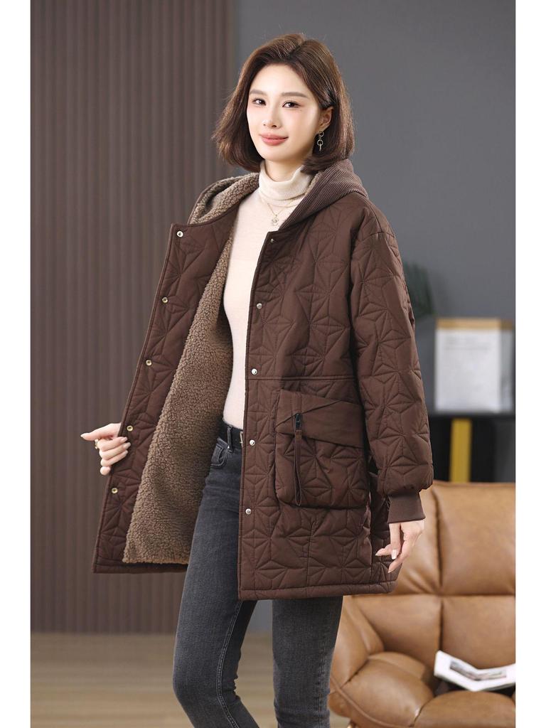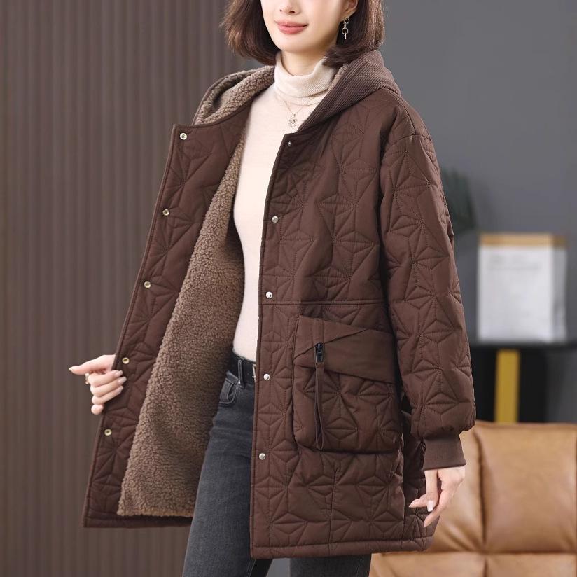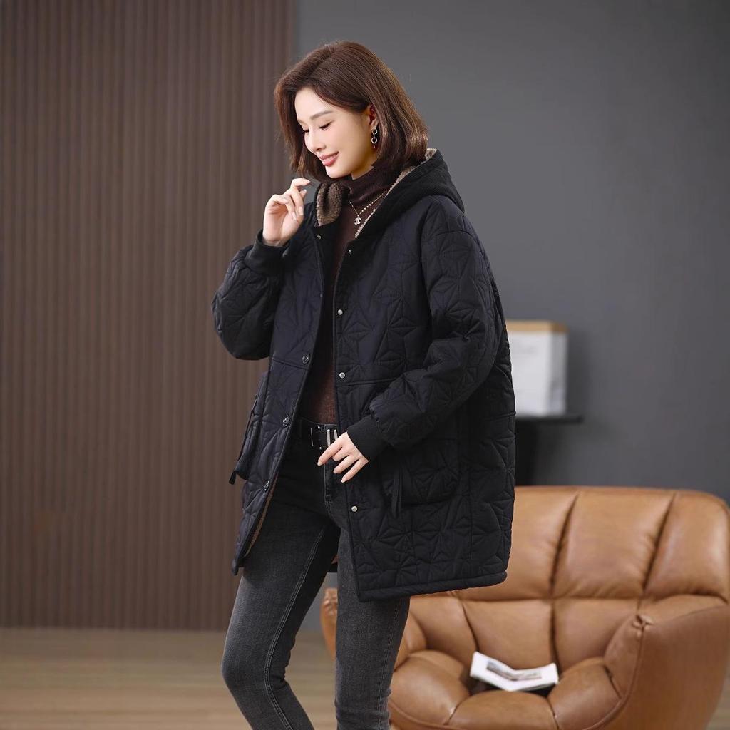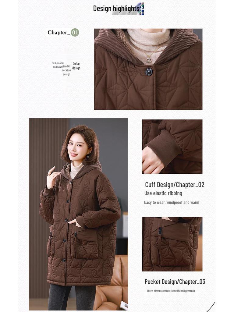 Женская зимняя хлопковая куртка большого размера с флисовой подкладкой 2024 - Повседневное теплое пальто для женщин среднего и пожилого возраста