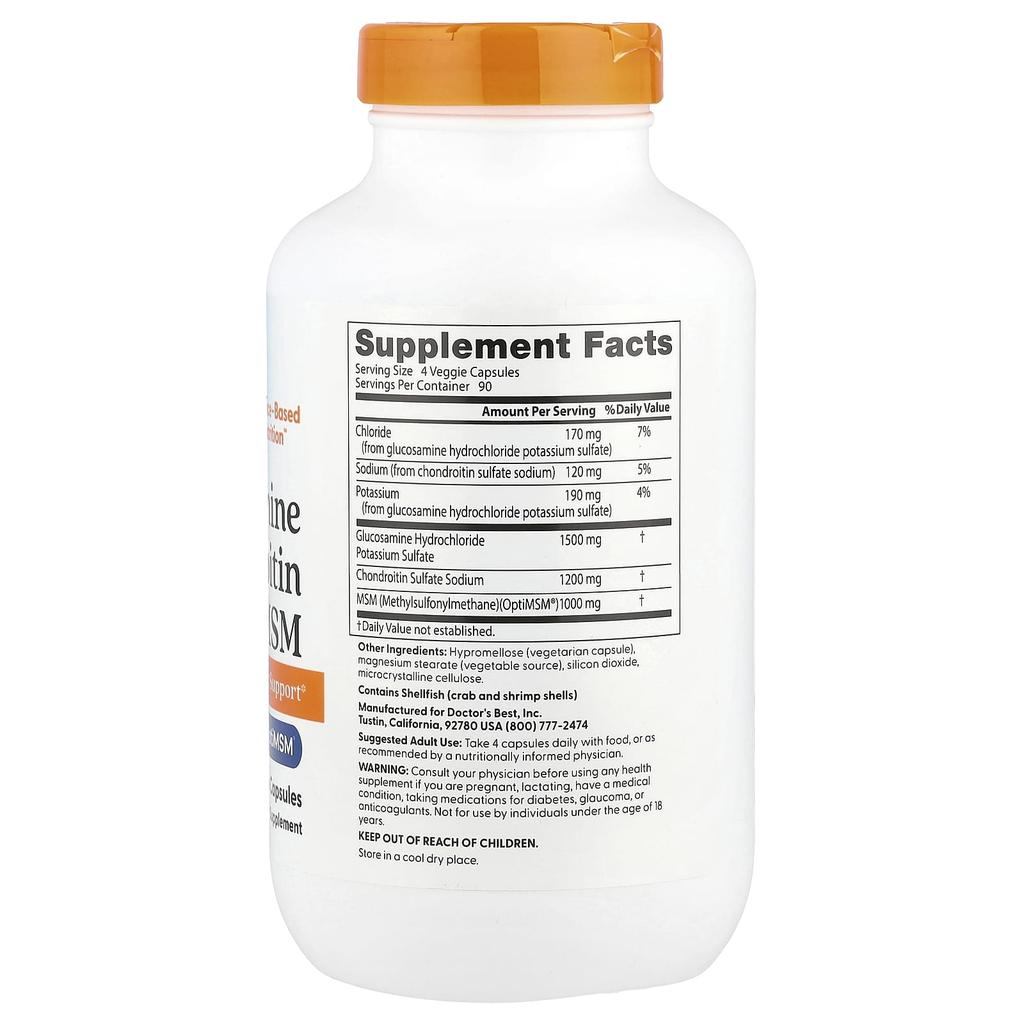 Doctor's Best Глюкозамин Хондроитин МСМ, Растительные Капсулы 360