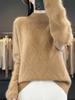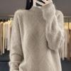 Женский осенне-зимний свитер из чистой шерсти ромбовой вязки - Полувысокий воротник, Универсальный, Элегантный пуловер