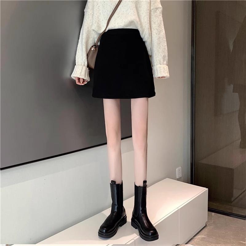 Женская юбка А-силуэта из смесовой шерсти с высокой талией - 2024 Маленькая Миди Облегающая, Защита от просвечивания, Универсальная для осени/зимы