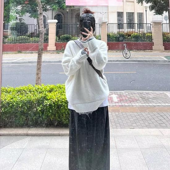 Женский зимний состаренный пуловер оверсайз два в одном с круглым вырезом и длинными рукавами