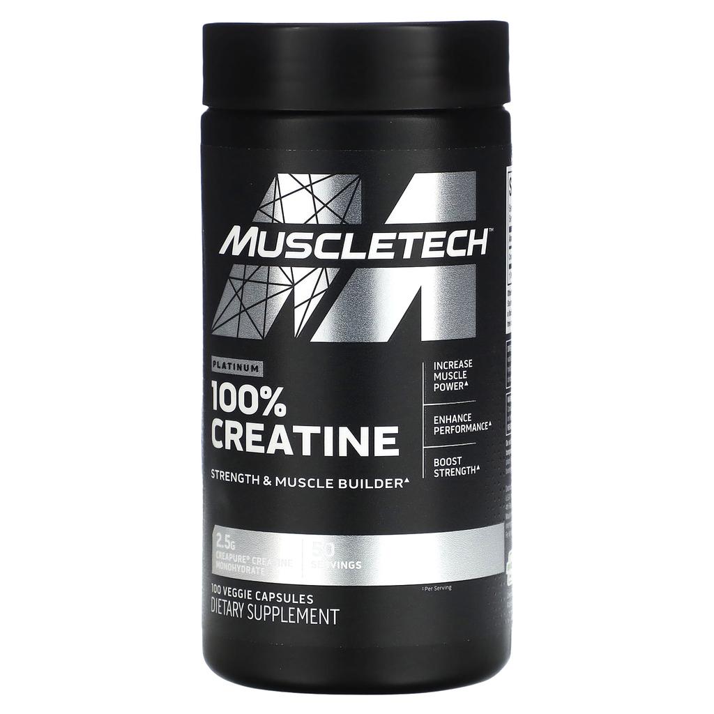 Описание товара: Сила и Наращивание Мышц Наращивание Мышц Тренировочная Вместимость Сила Creapure Креатин Моногидрат 2,5 г 50 Порций Добавка Сила, Мощность, Тренировочная Вместимость Креатин - фаворит серьезных спортсменов. Исследования показали, что креатин помогает увеличить мышечную массу, повысить силу и максимизировать результаты тренировок.. Platinum 100% Creatine обеспечивает ваши мышцы самым исследованным, высочайшего качества микронизированным креатином.. Каждая порция содержит научно доказанную дозу в 2,5 грамма, чтобы помочь вам достичь и превзойти ваши цели.. Мощные эффекты Креатин помогает быстро повысить способность ваших мышечных клеток к регенерации аденозинтрифосфата (АТФ), основной источник анаэробной энергии вашего тела. Более высокий уровень АТФ означает, что вы можете тренироваться интенсивнее, быстрее восстанавливаться и делать больше за меньшее время.. Фактически, одно клиническое исследование показало, что испытуемые, принимавшие креатин, содержащийся в двух порциях Platinum 100% Creatine, набрали 60,7 фунтов силы в приседаниях всего за 10 недель.. А в отдельном исследовании испытуемые увеличили силу жима лежа на 18,6% всего за 10 дней.. Капсулы Ultra-Pure и простые в использовании Platinum 100% Creatine портативны, просты в использовании и содержат 2,5 грамма ультрачистого моногидрата креатина на порцию.. Произведено методом ВЭЖХ, каждая порция обеспечивает качество, которого вы ожидаете от MuscleTech®.