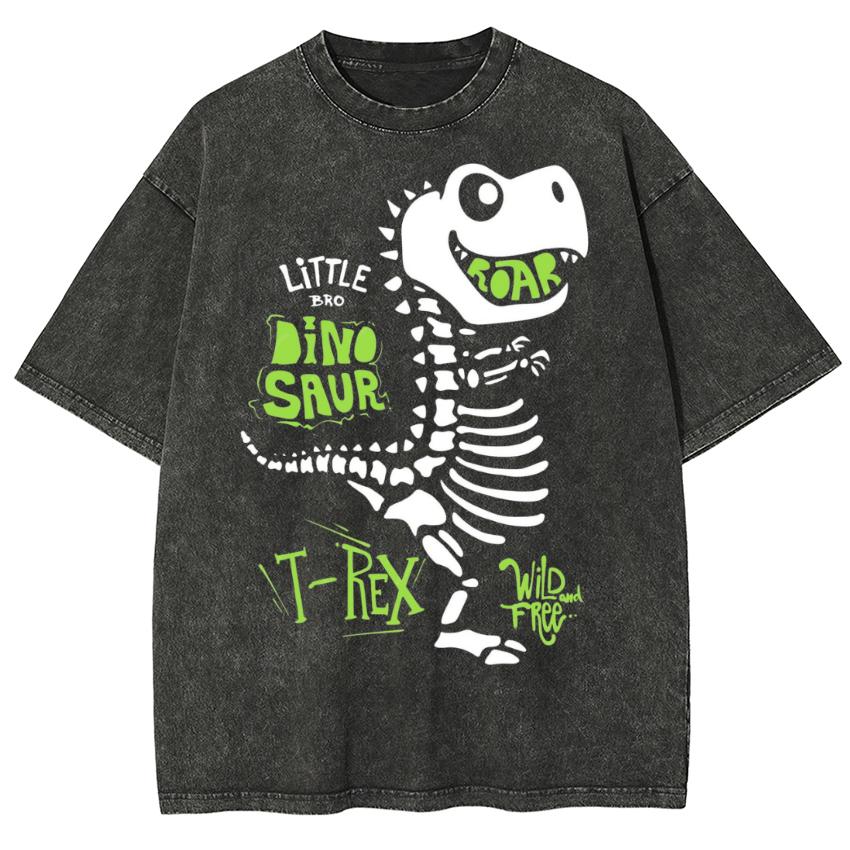 Маленький Бро Череп Динозавра Дикий и Свободный Винтажная Выстиранная Футболка Аниме Хлопковые Футболки Короткие Мужские Женские Топы Футболка Оверсайз