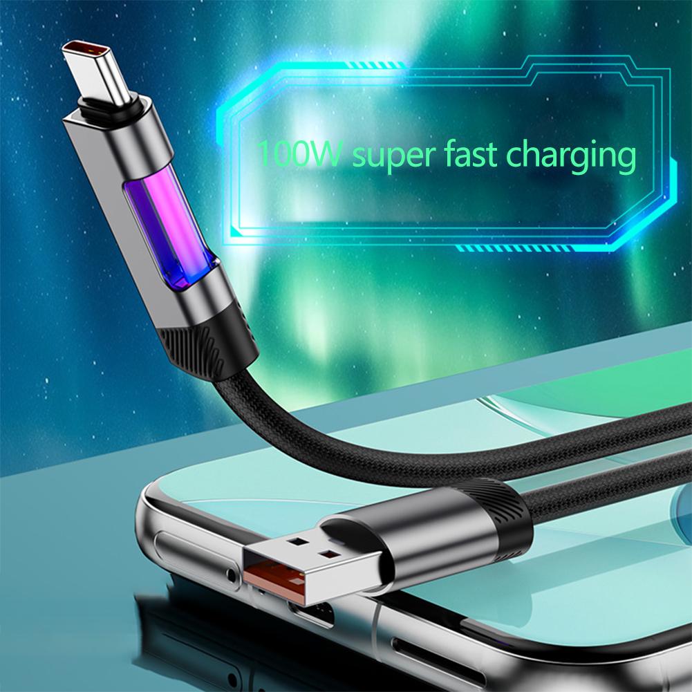Кабель для быстрой зарядки RGB 100 Вт 6 А USB Type C зарядный кабель с RGB подсветкой