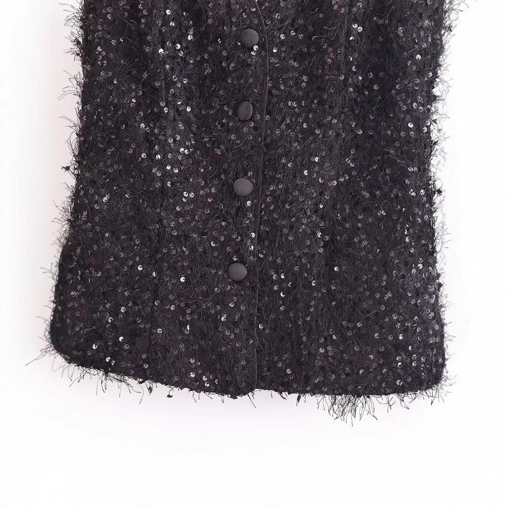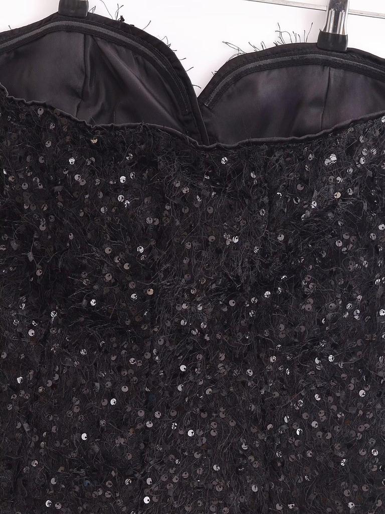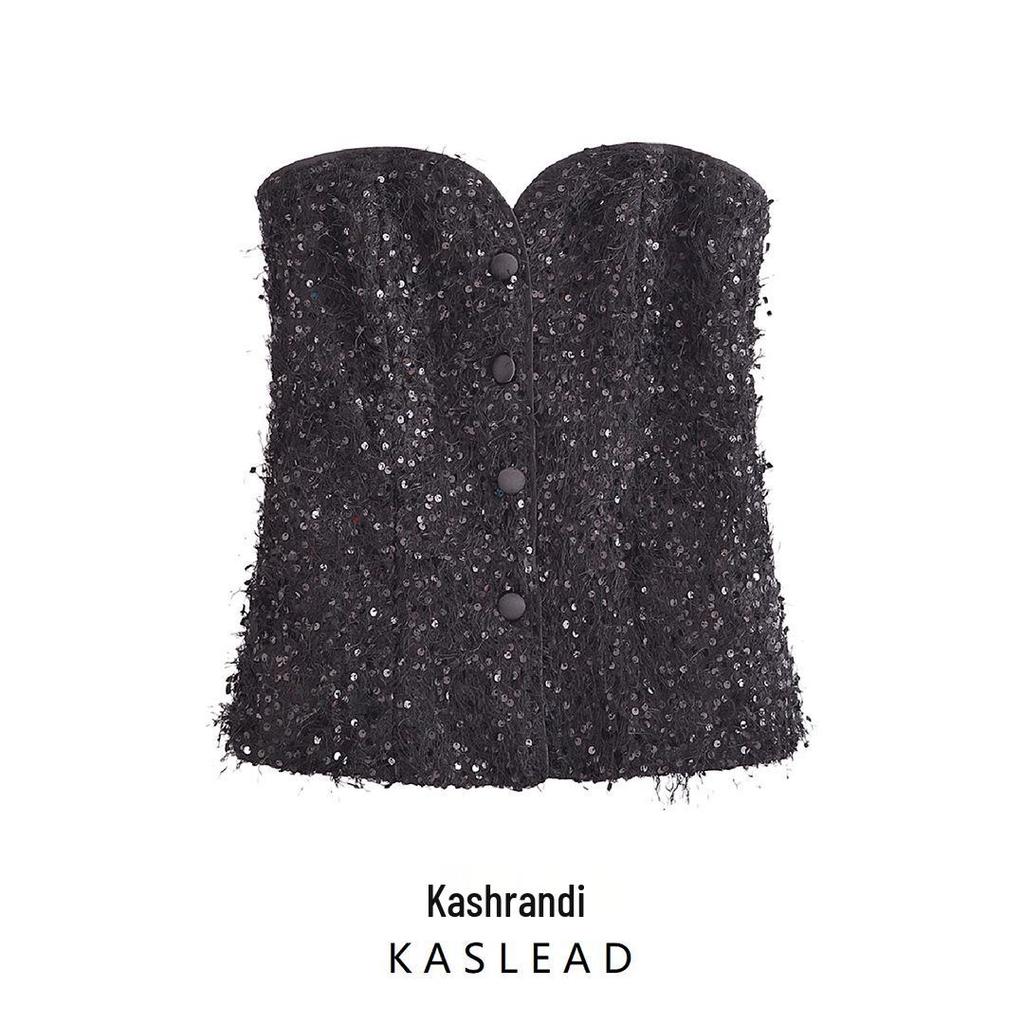 Весна 2025 Женский топ с отделкой из пайеток и кисточек - Мода в европейском и американском стиле