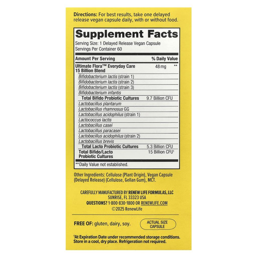 Ultimate Flora™ Daily Care Probiotic, 15 Billion CFU, Delayed Release Veggie Caps, 60