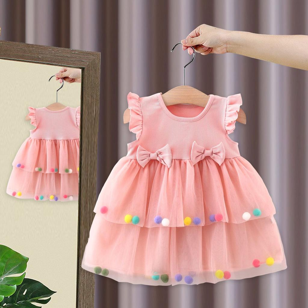 Детская одежда Платья для девочек Летние розовые платья принцессы для девочек Детские бальные платья с бантом-бабочкой