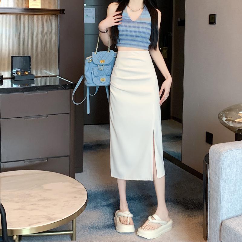 Женская юбка миди с высокой талией, облегающего кроя А-силуэта с разрезом, для ранней осени