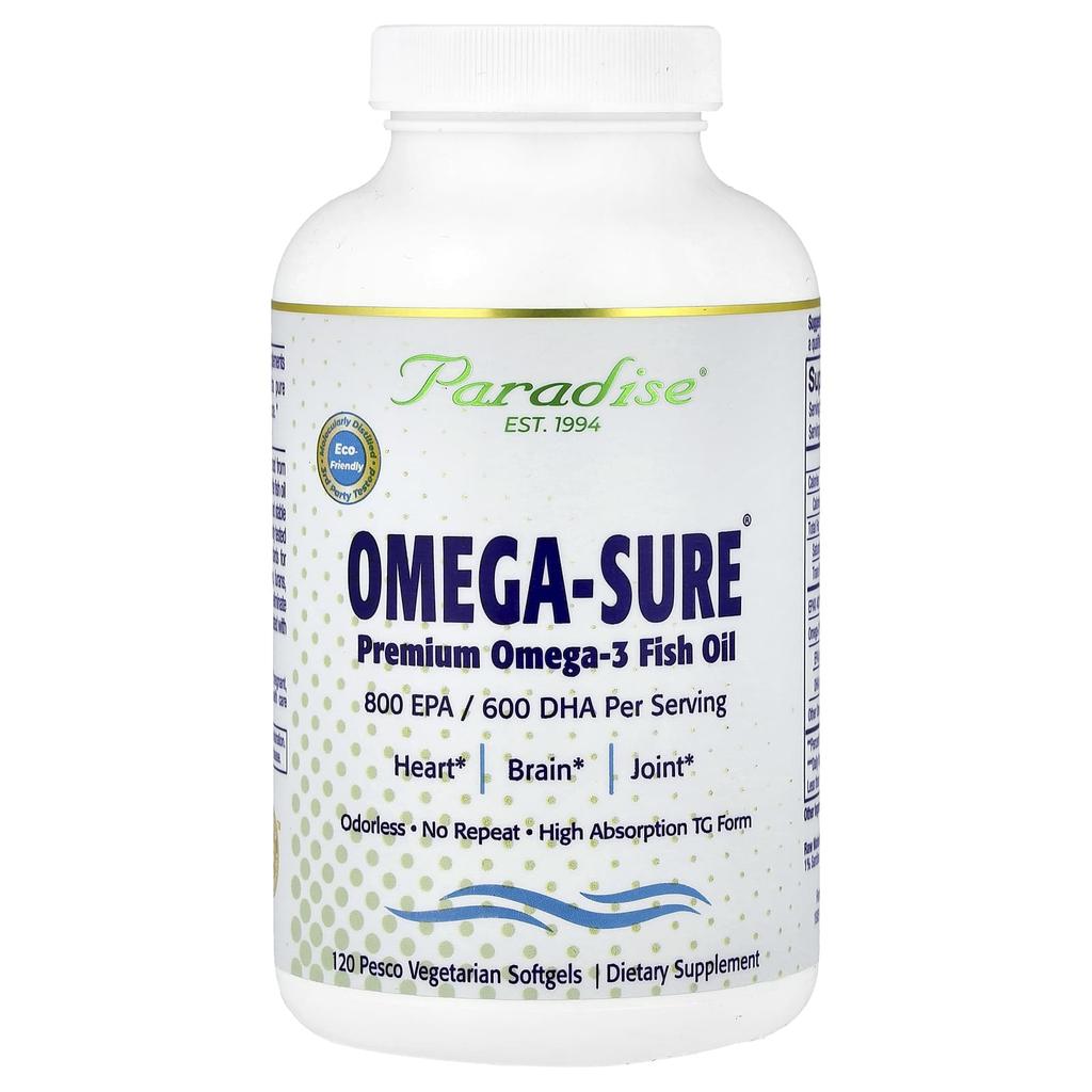 Omega-Sure®, Премиальный рыбий жир Омега-3, 120 вегетарианских мягких капсул — купить товар онлайн с бесплатной доставкой по всему миру!