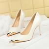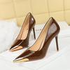 Туфли на высоком каблуке с низким подъемом для женщин, Декоративные супервысокие каблуки с острым железным носком, Одинарные туфли из лакированной кожи