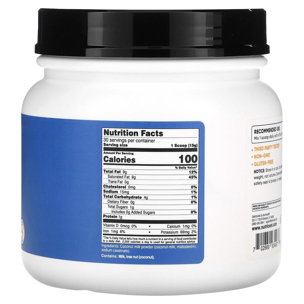 Кокосовое сухое молоко, без вкуса, 454 г (1 фунт)