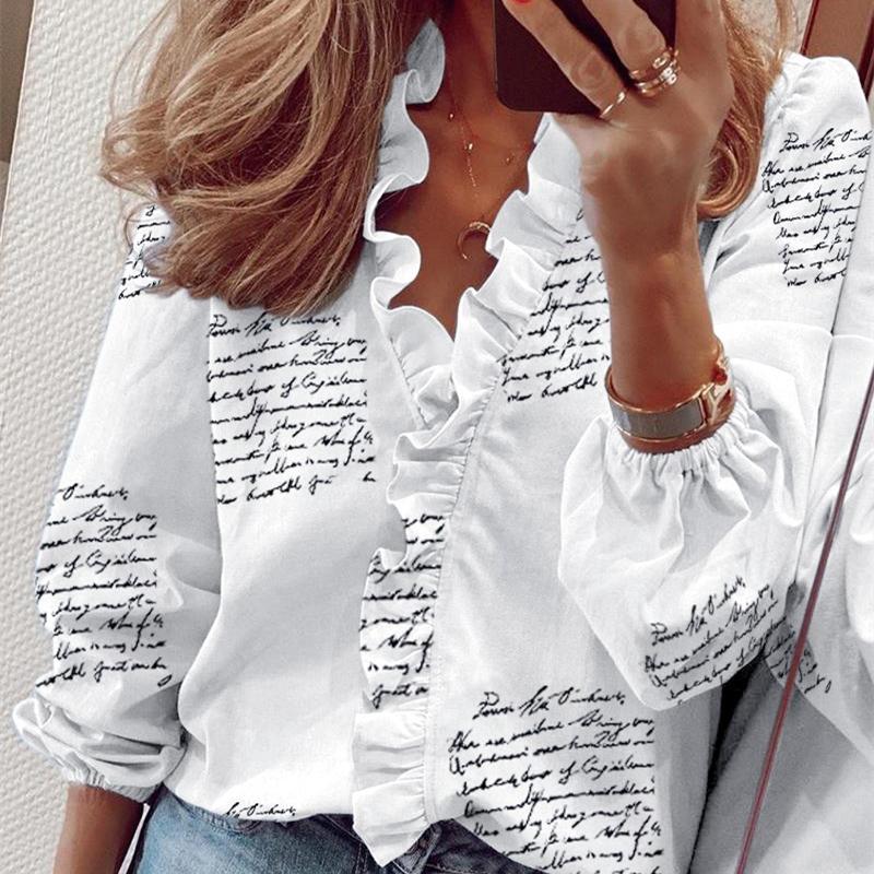 Женская весенне-летняя мода, повседневная рубашка с длинным рукавом и оборками, женская рубашка