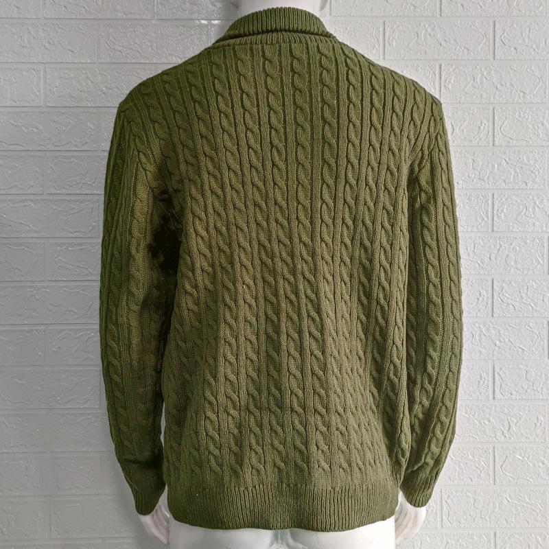 Зимний однотонный свитер-жакет с воротником и длинными рукавами 2025